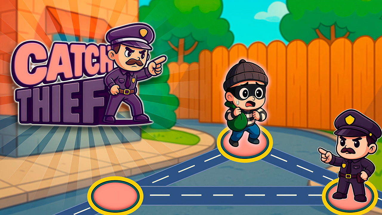 Catch Thief is an addictive puzzle game where you must outsmart a clever thief and stop his escape. Take control of the police, block every possible path and drive the criminal into a dead end. With each new level the challenge grows, requiring you to plan ahead, think strategically and act quickly. Bright cartoon graphics, fun scenarios and increasing difficulty make Catch Thief a perfect choice for fans of logic games who enjoy testing their skills, attention and reaction speed. Tap or click on a police officer and then on the dot where you want him to move. Place your heroes wisely to block the thief’s escape routes. Simple controls, colorful visuals and dynamic gameplay make Catch Thief easy and fascinating police,thief,catch,singleplayer,Kids Friendly,No Blood,mobile
